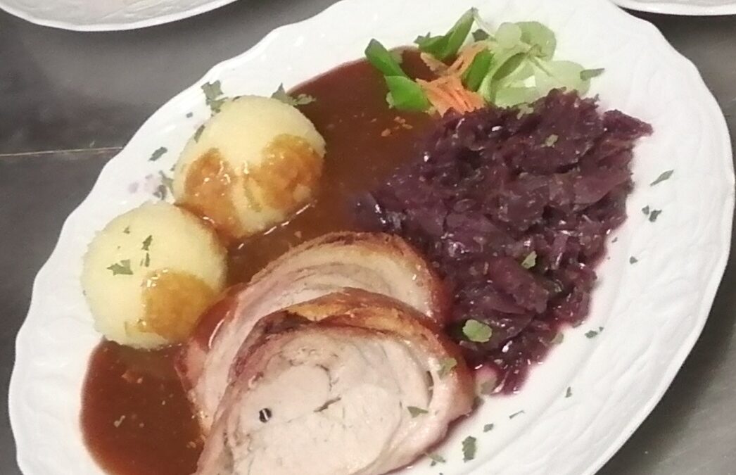 ab Sonntag gibt es ofenfrischen Spanferkel Braten mit Knödel und Rotkohl…